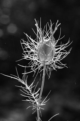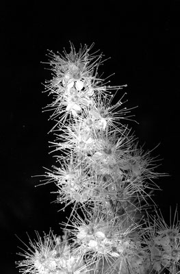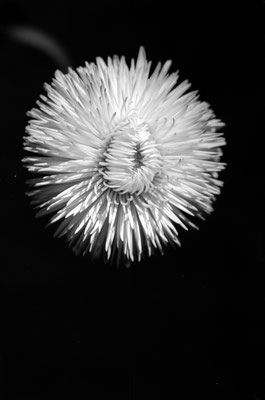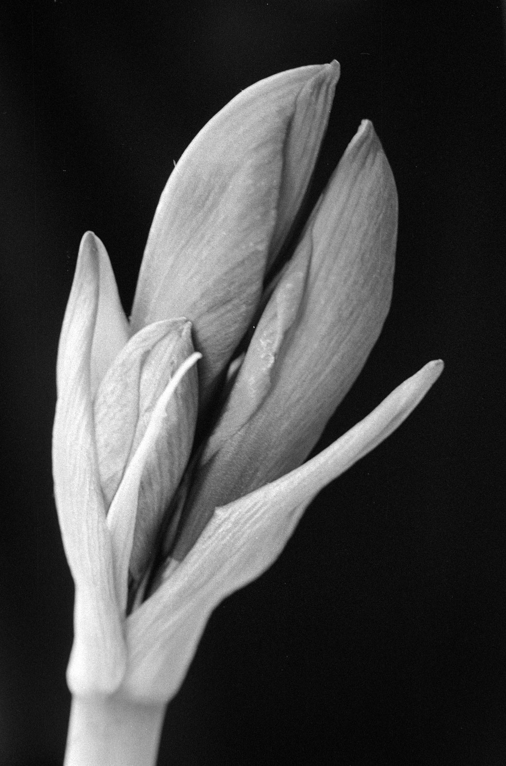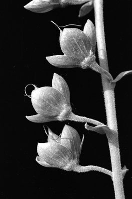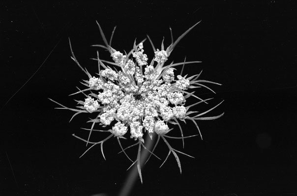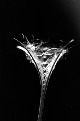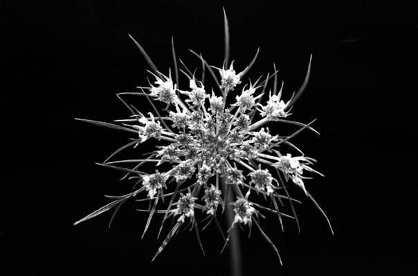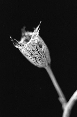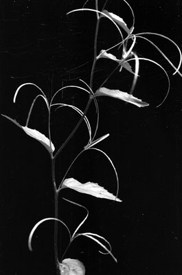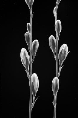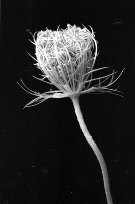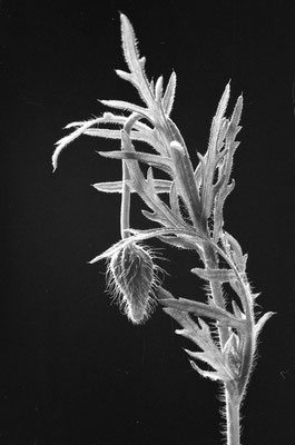 Inspiriert von Karl Blossfeldt isolierte Helga Ruge Pflanzen oder ihre Details vor einem neutralen Hintergrund - im Studio oder im Freien. Ihre unbeschreiblichen Bauformen treten hervor und offenbaren eine teils bizarre Vielfalt. Künstliche Lichtführung und kalkulierte Kontrastwirkungen unterstützten die Artikulation der Form.
